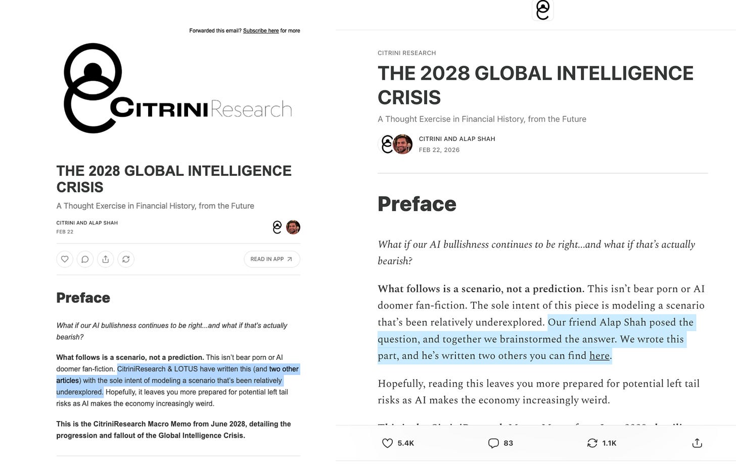 I. Every breath you take, every edit you make, every move you make, the market’s watching you: changes in authorship for the Citrini report