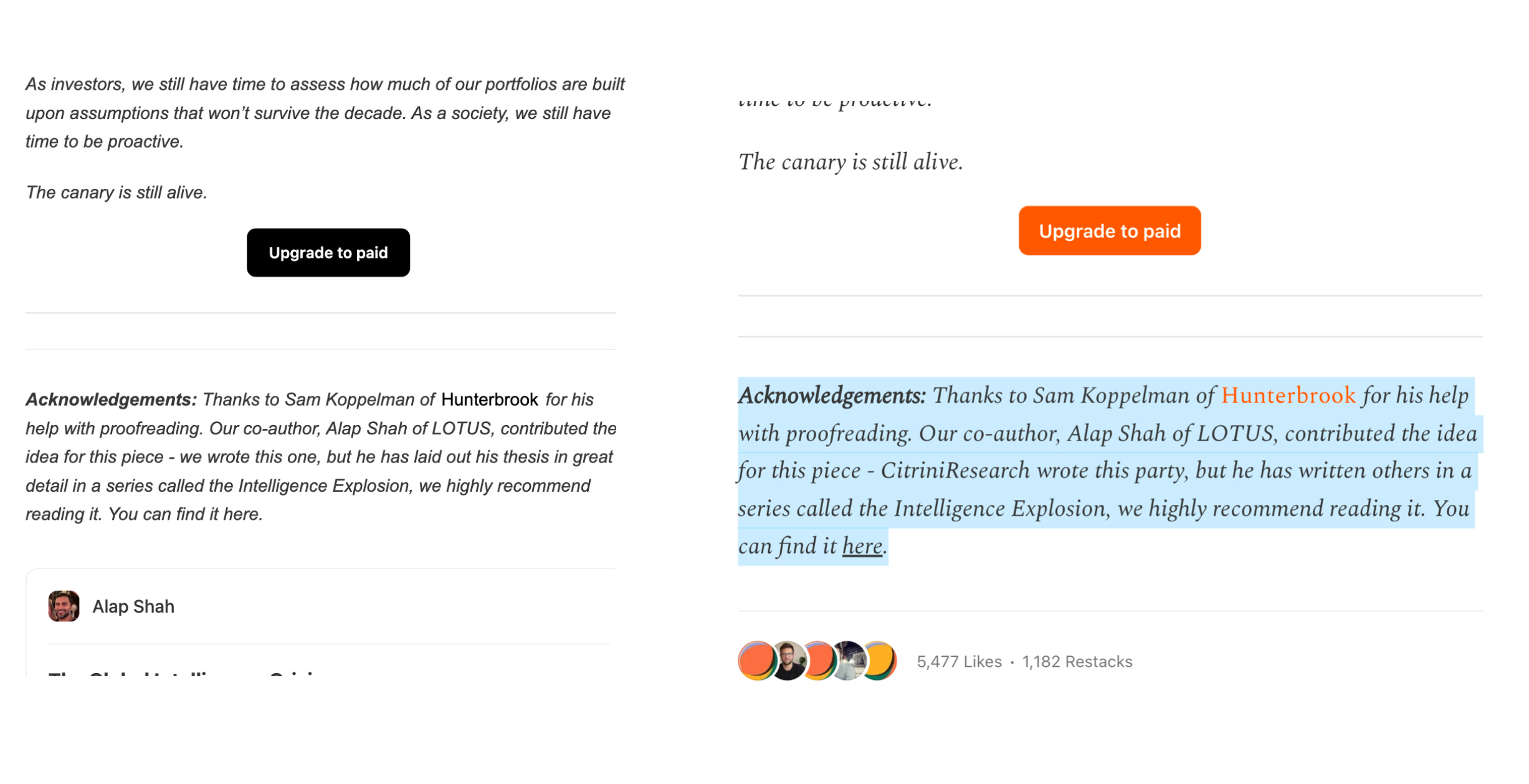 That’s why the change in language around Shah and his role has been intriguing, as the version currently on Citrini’s website does not say “CitriniResearch & LOTUS have written this.”