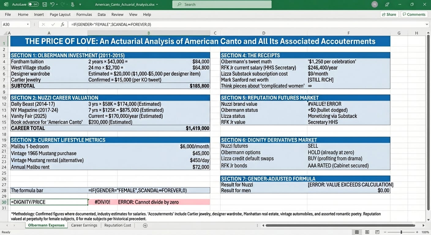 What is the price of love? A spreadsheet quantifying a journalistic scandal
